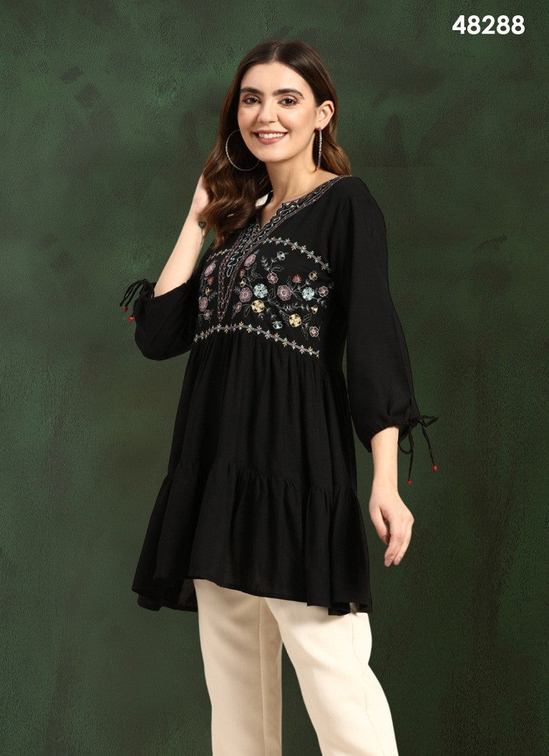 Blue Colour Kiara By Mahotsav Embroidery Chinon Western Top
